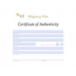 Buyers of limited edition prints are entitled to a Certificate of Authenticity upon request prior to placing a limited edition print order online, or at the time of or prior to delivery of the limited edition print. Every limited edition print sold through Bedgeburry Park comes with a signed and numbered Certificate of Authenticity which includes a certification that the "information and statements contained therein are true and correct."