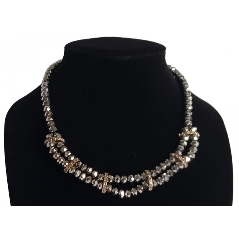 Step into elegance with our stunning glittering faceted silvered black crystal bead necklace, a vintage-inspired masterpiece that exudes timeless glamour. Adorned with dazzling rhinestone bars, each boasting seven sparkling rhinestones, this necklace is the epitome of glamour.