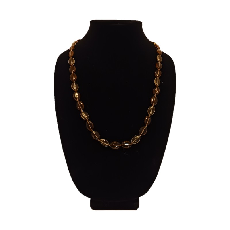 Introducing the epitome of sophistication: the Jones New York Vintage Necklace. Crafted with lucite clear and amber-colored transparent beads, this necklace boasts 36 oval beads measuring 15mm x 10mm each, exuding timeless elegance and charm.